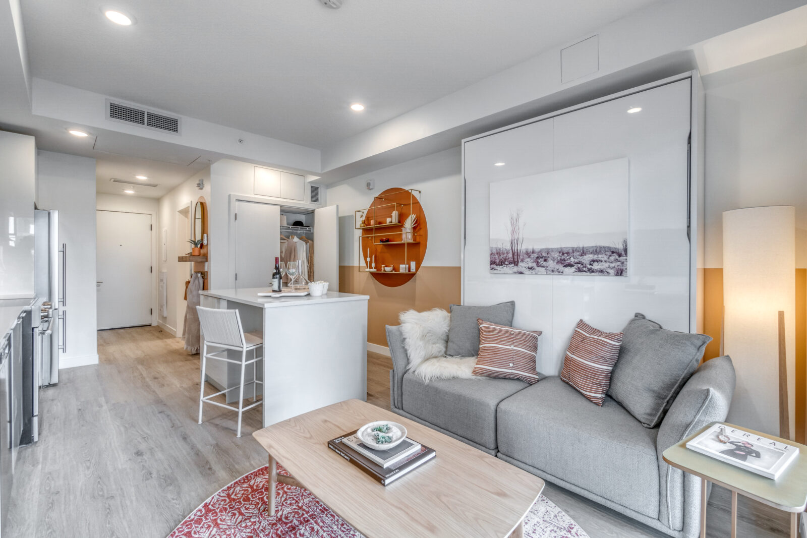 Located in Calgary, Alberta, Dominion is an amenity rich rental development that is dynamic, energetic and engaged. With modern warm interior that suit all styles, the studio, 1 bedroom, and 2 bedroom units are spacious and accommodating to all lifestyles. As an extension of your home, you’ll find the amenities to support working, entertaining, fitness, tinkering & tooling and an on-demand concierge team to aid with just about anything. With a strong attention to detail, Dominion is elevated rental living.