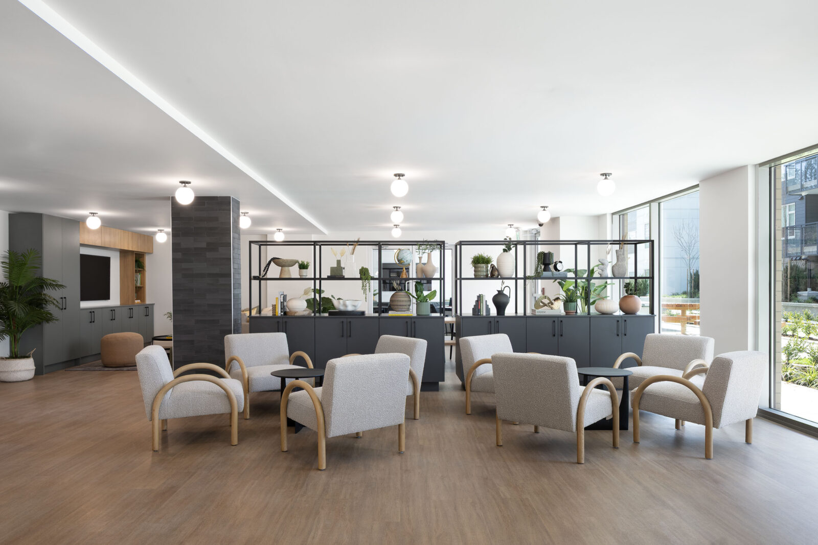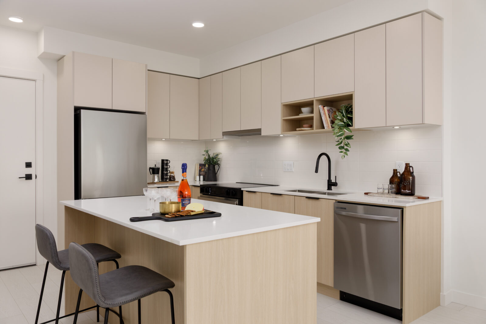 Hartley, in the heart of Surrey, is bright, modern, quiet living at it’s best. Warm wood tones, taupe finishes, black accents and spa-like bathrooms provide serene sanctuaries for homes, while the vast amount of robust amenity spaces create a wonderful extension of the home to spend time with friends and family, for well-being and self-improvement and fun for young and old.
