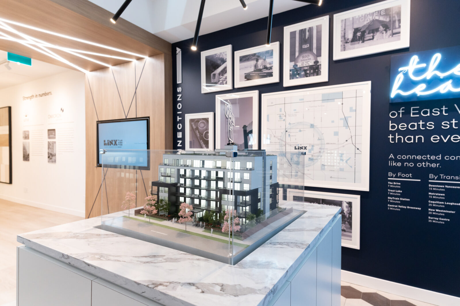 In the heart of East Vancouver, Linx offers up 1 bedroom, 2 bedroom and 3 bedroom homes that boast over-height ceilings with large windows and sleek kitchens with integrated appliances. Ensuites showcase tiled shower bases, tiled walls and ample storage.