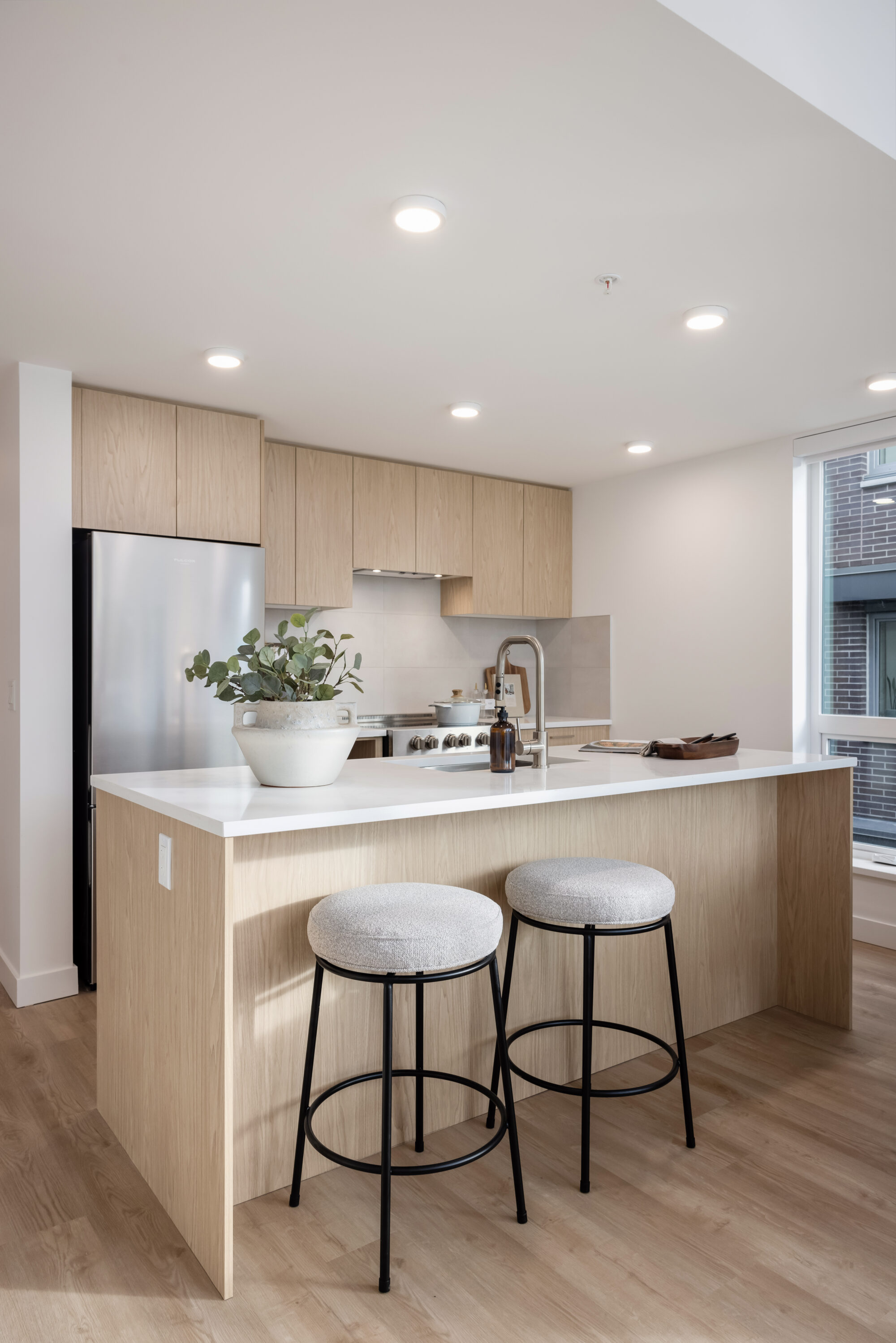 Located and Cambie and King Edward in the heart of the Cambie Corridor, Sterling provides a collection of 90 rental homes including studios, 1 bedroom, 2 bedroom and 3 bedroom units. With warm wood cabinets, vinyl plank flooring throughout and porcelain tile in the bathrooms, these units are warm and welcoming and perfectly set into the surroundings of Queen Elizabeth Park.