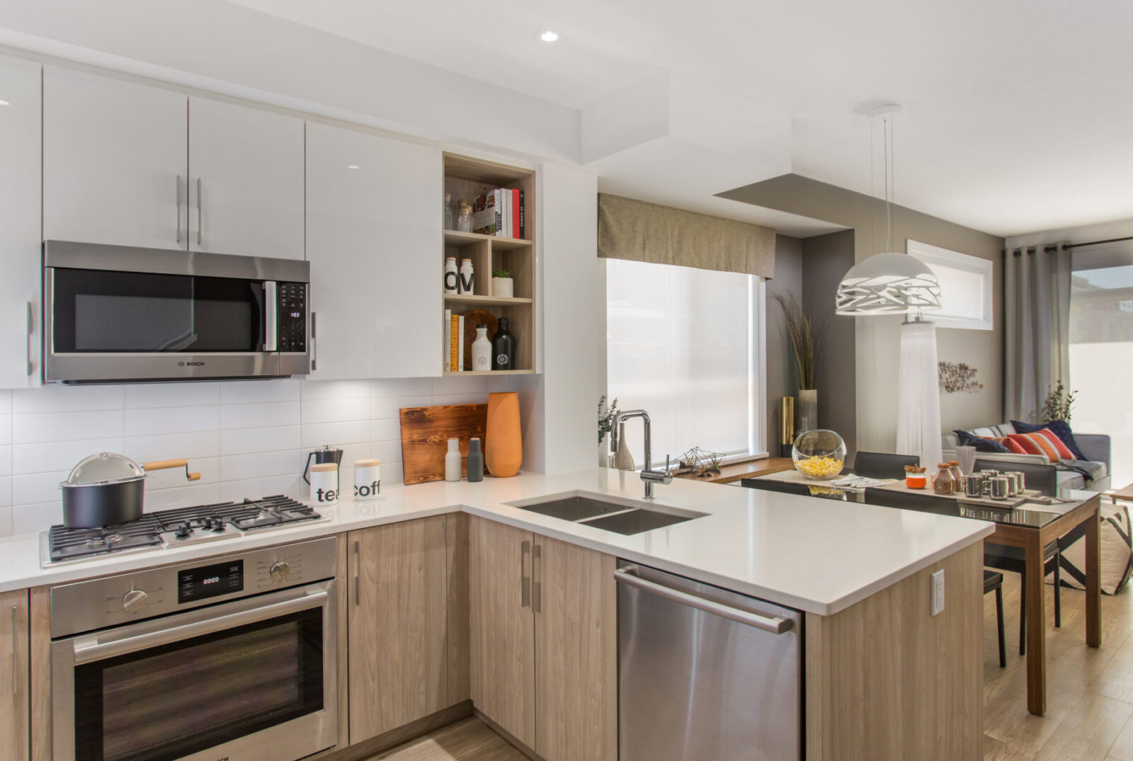 This development is located in Burnaby’s sought after Metrotown neighbourhood and was designed with growing families in mind. Warm and inviting cabinetry and flooring are the foundation of these well designed homes.